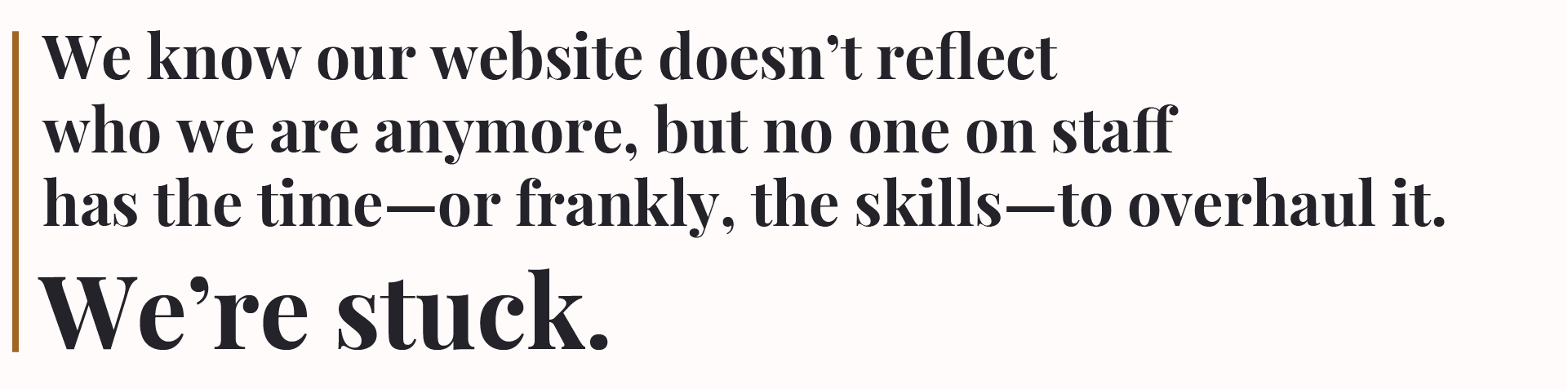 Oh, hey Reader, just a heads up before you read on: there's some spicy language within. Here goes: Have you heard of the term enshittification?Cory Doctorow coined it to describe the slow degradation of platforms that start user-friendly, then become increasingly exploitative once they've made themselves indispensable. 🤯 Social enterprises do this too, in their way. It starts small—a word here, a phrase there that sounds more "results-oriented" to funders. Maybe you swap out "help" for "impact" or "people" for "stakeholders"—psssst, more on that last term in the p.s.—because that's what sounds serious in grant applications. You tell yourself it's just being more strategic, more fundable, more likely to survive another budget cycle. But each adjustment nudges you further from how you actually talk when explaining your work to someone you care about. This isn't just digital pollution, though it is that. There's something deeper happening when the gap between what you project and what you actually are grows too wide. That tension becomes low-grade friction that follows you everywhere. You start adjusting, with the hope to smooth out the edges. Slapping quick fixes on an outdated site. Cutting corners because the time, money, and people just aren’t there. Pretty soon, the brand you’re projecting looks technically fine—but it doesn’t feel like you anymore. I hear versions of this all the time: “We know our website doesn’t reflect who we are anymore, but no one on staff has the time—or frankly, the skills—to overhaul it. We’re stuck.” It often sounds like this: "Every time we try to start, we hit a wall. Do we update the copy first? Find a designer? Pick a new platform? It's too many choices and not enough hours." People can sense the performance. The disconnection registers, even when they can't name it. This is where I nerd out: how your landing page reads, whether your website reflects the conversations happening in your office. These aren't just marketing materials; they're mirrors where the gap between who you are and who you think you need to be becomes most painfully visible. The work I do is about closing that gap. Not through slicker marketing, but through the messier process of figuring out who you are, learning about who you help, and letting that show up. Good design reflects your actual priorities, and uses language that matches how you talk when explaining your work to someone you care about. Beware: it's more meticulous work than slapping a template on your problems. But the alternative is adding to the noise and becoming part of the enshittification—another organization that's been optimized into indistinguishability, professionally polished and fundamentally forgettable. What I know is this: the cure for enshittification isn't better polish. It's the courage to be recognizable. Take this as your nudge to keep resisting in your own way. ✊🏼 High fives, pals Reesa p.p.s. Want to learn more about Cory Doctorow? Try this and this. About Reesa Beyond design, I'm a parent to a young girl gang, and move from weightlifting to vernacular jazz dance (though seldom together), along with reading, cooking, and reading about cooking. I'm always happy to talk about vegetarian food or my temperamental sourdough starter, Pudding. |